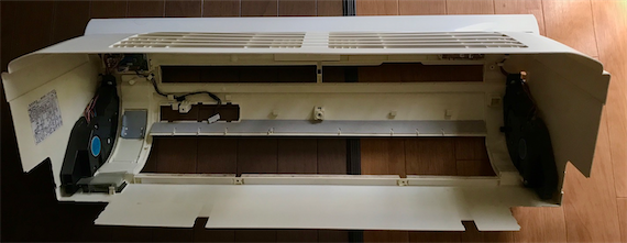 10年物の、シャープのお掃除機能つきエアコン(AY-Z22VX)。夏限定でしか使ってこなかったものの、吹き出し口に黒いものが現れるようになってきました。