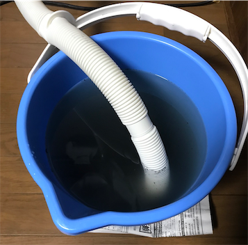 エアコンがクサかったら5箇所掃除!自分でできるエアコン掃除方法 | みんなのハウスクリーニングのページを参考に、45ℓのゴミ袋3枚と養生テープと古い洗濯機のホースとバケツを繋げて行いました。