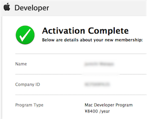 購入が完了すると、サポートから「Apple Developer Program Activation Code」というメールが来るので、Activation Codeのリンクをクリック