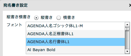 使用フォント:AGENDA人名正楷書体L1(宛名職人で使っていたもの)