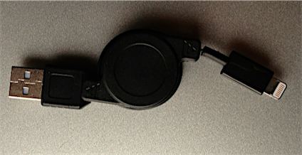 これだけだとメール便の送料がもったいないので、認証品ではありませんが「Apple Lightning ライトニング / USB 巻き取り式 リールケーブル」299円(メール便対応)も合わせて注文しました。