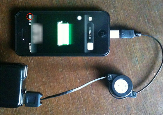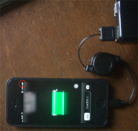ACアダプタとiPhoneを接続。問題なく充電できています。(iOS 6.1。iPhoneへの接続もきつかったりせず、端子の作りも問題ないようです)
