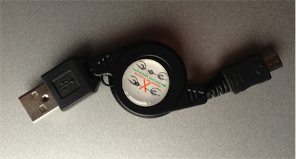 まずは、「巻き取り式 USB-microUSB ケーブル」の方(リールの作りはそれなりです。でも値段を考えたら十分)