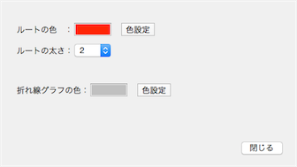 ルートの線の色と太さ、折れ線グラフの色を設定できる機能を実装しました。