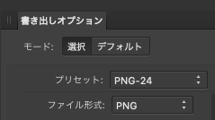 あとは、スライスパネルで書き出したいアイコンを選択したら、書き出しオプションのプリセットでPNG-24を選択。