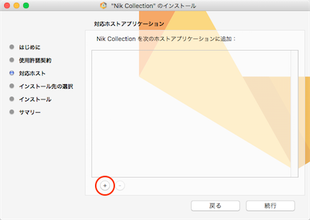 ホストアプリケーションの設定画面で、「+」ボタンをクリックして、