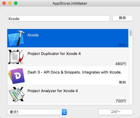 AppStoreLinkMaker Mac 2016.06.192016.06.27 この記事は最終更新日から 約10年が経過しているので情報が古い可能性があります。 Mac App Storeのアフィリエイト用のタグを簡単に作成するためのアプリとしては「AppStoreHelper.app」がありますが、バッジをページのSSL化に対応させるために色々と試している過程で、だいぶ手抜きをしていますが自分用に簡単なものを作ってみました。 書式1で生成したもの Xcode (無料) 書式2で生成したもの Xcode カテゴリ: Developer Tools 価格: 無料