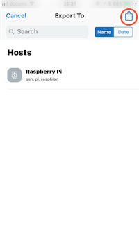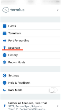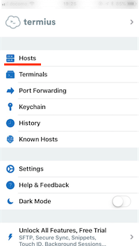 iPhoneのTermiusに戻ったら、一覧から「Hosts」を選択