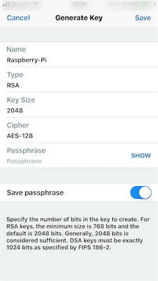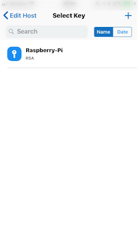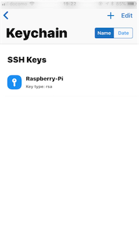 Keyをタップして先ほど作成した暗号鍵のリストが表示されるので、該当するもの(例ではRaspberry Pi)を選択
