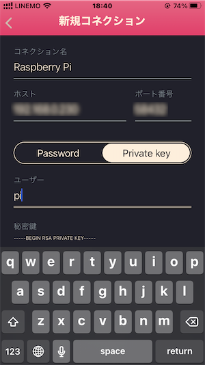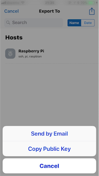 なお、すでにMacで公開鍵認証を設定しているので、iPhoneのTermiusで生成した公開鍵をメールで一旦Macに送り、MacでRaspberry Piにアクセスしてファイルを編集するようにします。