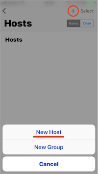 右上の「+」アイコンをタップ、次に「New Host」をタップ