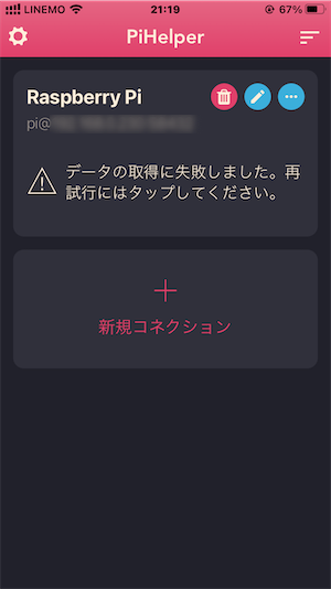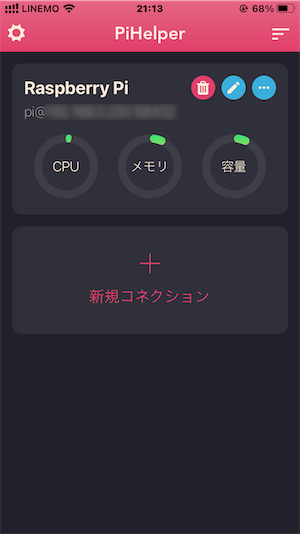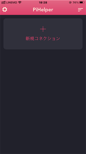 PiHelperを起動したら、新規コネクションをタップして