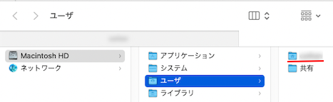 また、Finderでユーザフォルダ内の赤線部分に表示されているものになります)