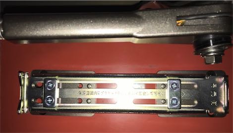 本体取付用のスライド取付板を取り付け。最初の固定金具のネジは説明書に載っていた⑥-3または⑥-4ではなくて、元のネジに似ている、⑥-5の5 x 25 皿タッピングネジを使用