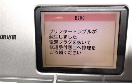 昨日まで問題なかったのに、今日使おうと思ったら、なんとB200エラーなるものが表示されてしまいました。