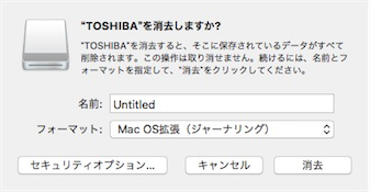 「消去」ボタンをクリックしてフォーマットしてください。(この例では「Untitled」という名前で作成しました。)