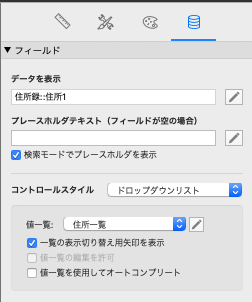 住所1を選択して、コマンド + iで「インスペクタ」ウインドウを表示