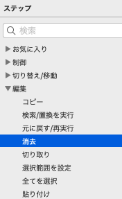 「ファイル」メニュー→「管理」→「スクリプト」 左上の「+(新規)」ボタンをクリックして 右のリストから、「編集」内の「消去」を選択してダブルクリック