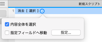 右側に、消去[]と表示されるので、下の「内容全体を選択」、「指定フィールドへ移動」にチェックを入れると設定ウインドウが開くので、