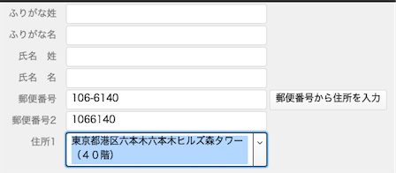 郵便番号の右に「郵便番号から住所を入力」というボタンを作成