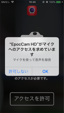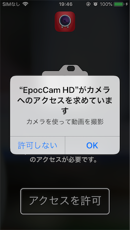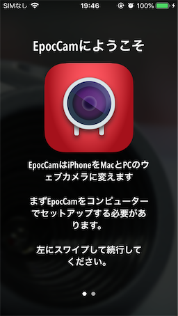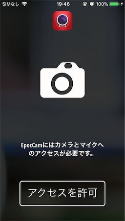 iPhoneのアプリを起動。(画像はEpocCam HD Webカメラ for Macのもの)