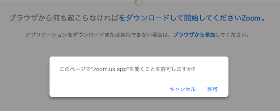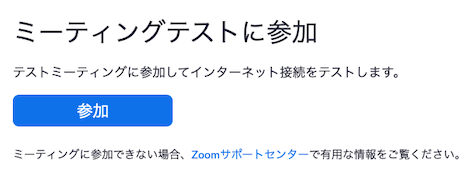 Safariでテストミーティングに参加 – Zoomのページへアクセスします。「参加」ボタンをクリック。