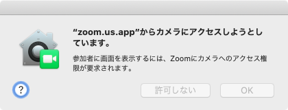 最初の起動時に、カメラとマイクへのアクセス許可を求められるので、許可してください。