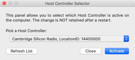 Bluetooth Explorerアプリを起動して、ToolsメニューよりHCI Controller Selectorを選択、Pick a Host Controlerポップアップメニューより Appleじゃない方を選択して、 Activateボタンをクリックで優先順位を変えてマックを再起動