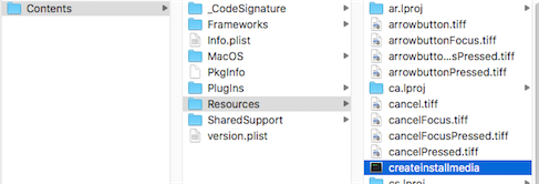 Contents/Resources/createinstallmediaをターミナルのsudo の後ろにドラッグ&ドロップすると、パスが補完されます。