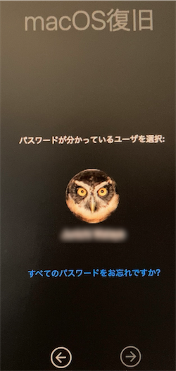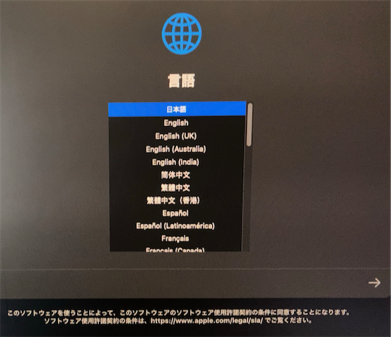 Macの電源ボタンを押し続けていると以下のような表示になるので、