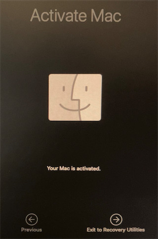 アクティベートが完了すると、以下のような画面になるので、「Exit to Recovery Utilities」をクリックします。