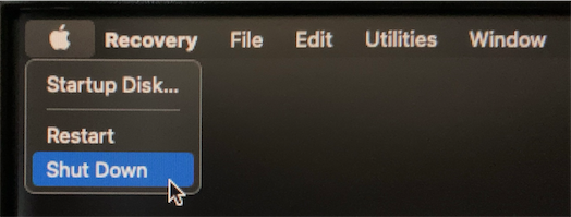 アップルメニューから 「Shut Down」を選択して、一旦終了します。