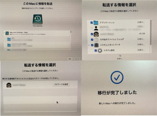 最後に、Time Machineのバックアップから情報を転送して完了です。