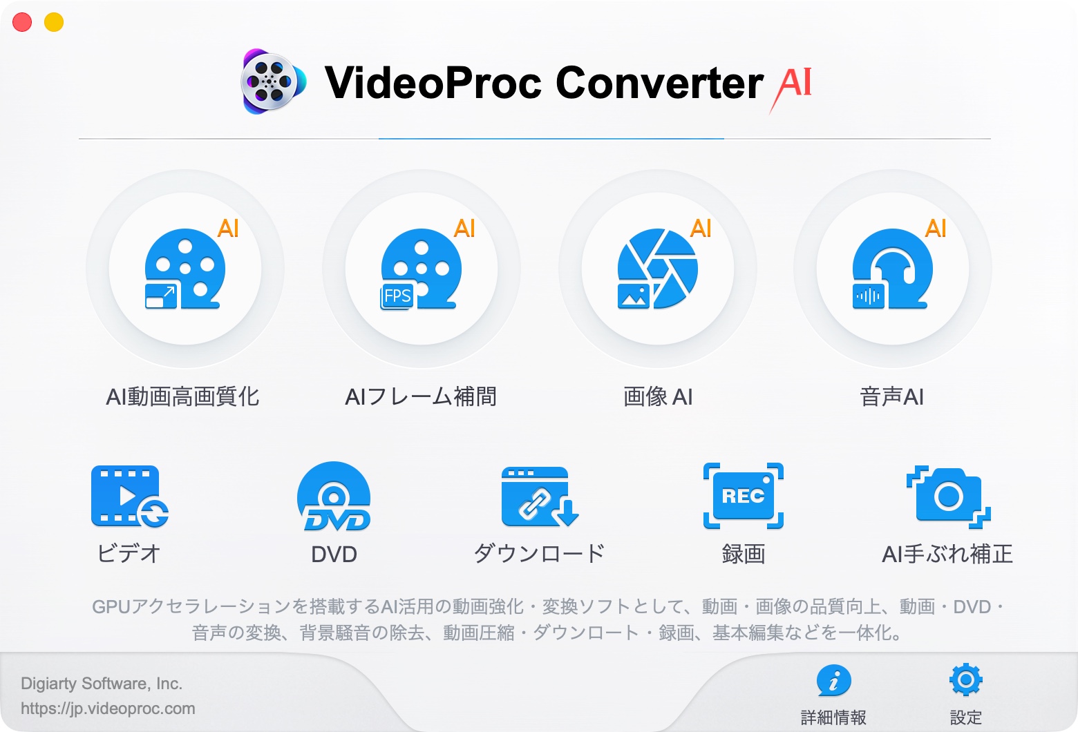 7.0で、Mac版にもAI機能が搭載されました。アプリ名は「VideoProc Converter AI」となり以前のものとは別?になるようです。