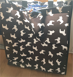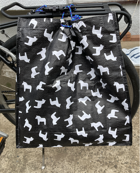 買い物袋は、そこそこ丈夫だけど畳むとコンパクトで嵩張らないという条件で探して、IKEAのHÄSTHAGE ヘスターゲ バッグ, ブラック, 38x15x42 cmにすることに。税込199円です。