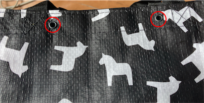 穴を開けてハトメで補強したもの