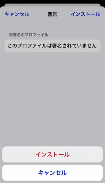 右上の「インストール」をタップ。さらに下に表示された「インストール」をタップ。