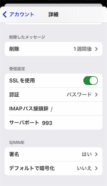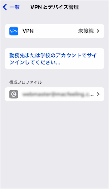 確認。構成プロファイルの該当するメールアドレスをタップすると確認できます。