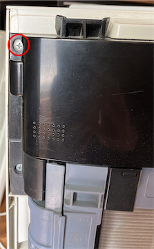前面カバーを外したら、ランプカバー組立品の左右のネジを外します。