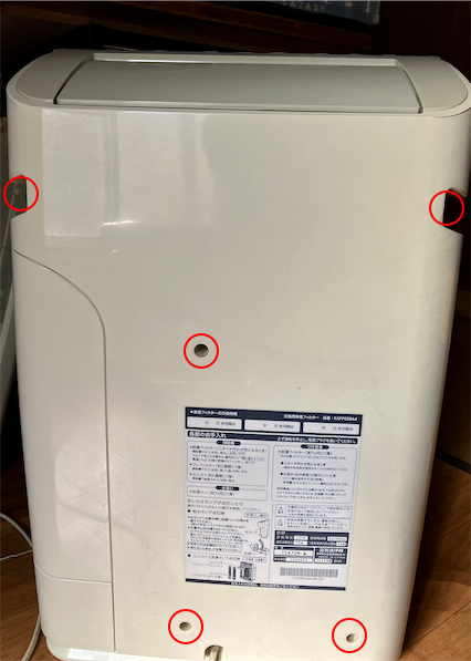背面の5箇所のネジを外します。(奥の方にあるので、長めのプラスドライバーが必要です。)