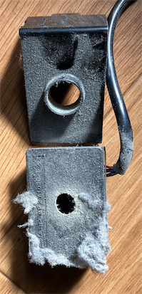 すごく汚れています。掃除機で吸い取ったら、穴の中は綿棒などを使って静かに拭き取ります。