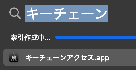 「キーチェーンアクセス.app」を起動します。 Sequoiaでは「ユーティリティ」フォルダには存在しなくなりましたので、Command+スペースバーにてSpotlightウインドウを開き、キーチェーンと入力すると、候補に「キーチェーンア クセス.app」が表示されるので、選択します。