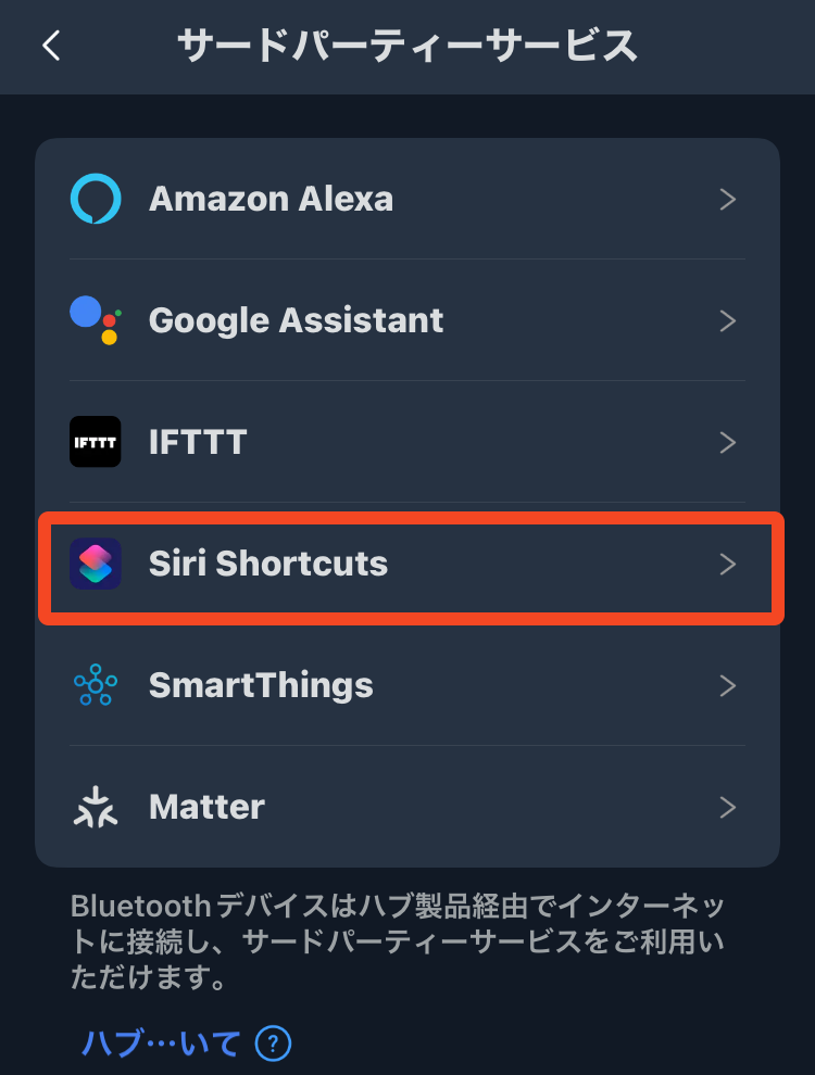 SwitchBotアプリで、Siriでコントロールするデバイスを選択します。