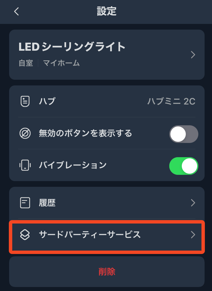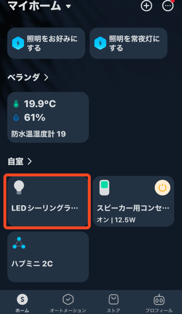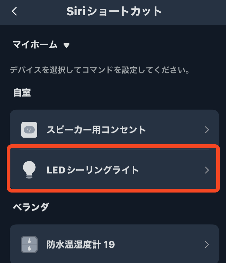 ハブミニには、すでにSiriで操作するデバイス(例の場合はLEDシーリングライト)が登録されていることとします。