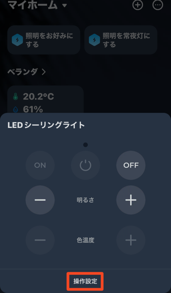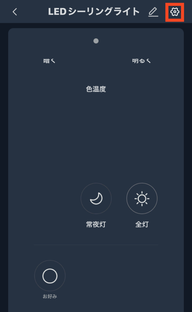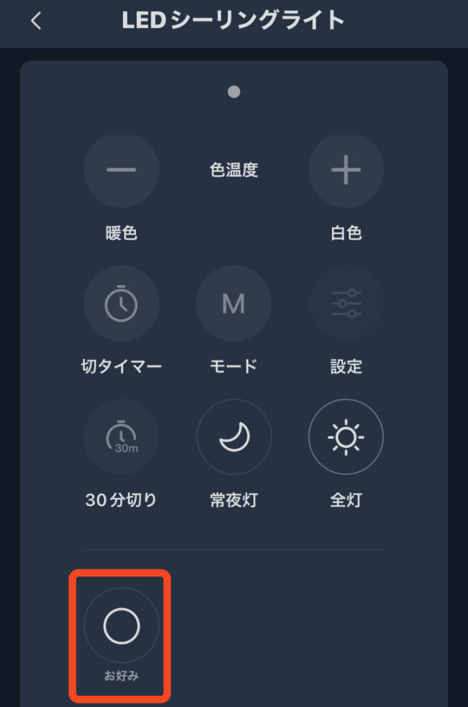(私の場合は「お好み」に全灯からちょっと暗くしたものをセットしているので、「お好み」をタップ)