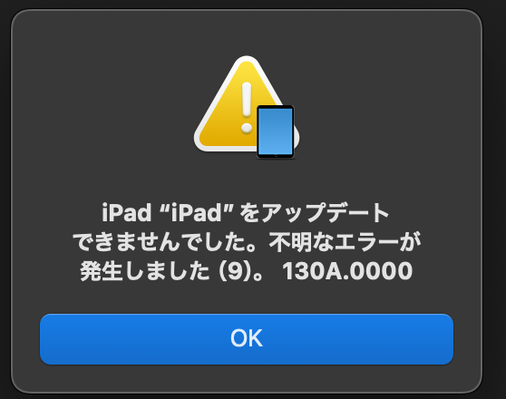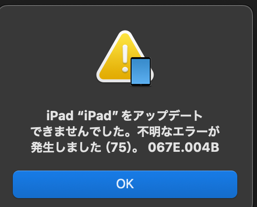 iPhone&iPadiPadをMac(macOS 15.6 Sequoia)に繋げて18.6にアップしようとしたところ、途中で失敗して止まってしまう。