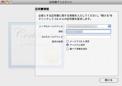 アプリケーションメニューから、証明書アシスタント » 認証局に証明書を要求…を選択